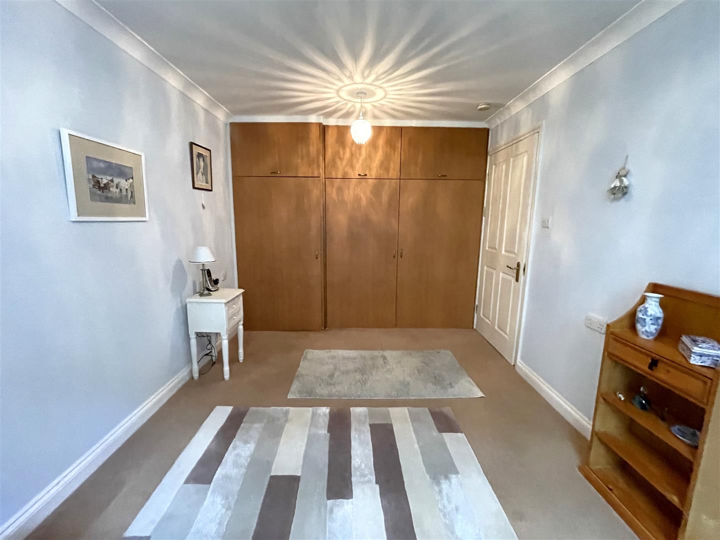 Double glazed window overlooking the gardens, TV and telephone point., coved ceiling, radiator and built in wardrobes with drawers and additional storage above.